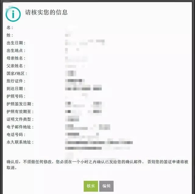 6、点击保存后,就进入了土耳其电子签证攻略的最后一步。这个页面主要是核实您的信息,请务必仔细核对检查,再未最终核实确定前,都可以进行编辑进行修改,一旦确认点击核实想要再修改信息,已经不可行了,签证费白付,入境也会是个大问题。确认信息无误,点击核实。