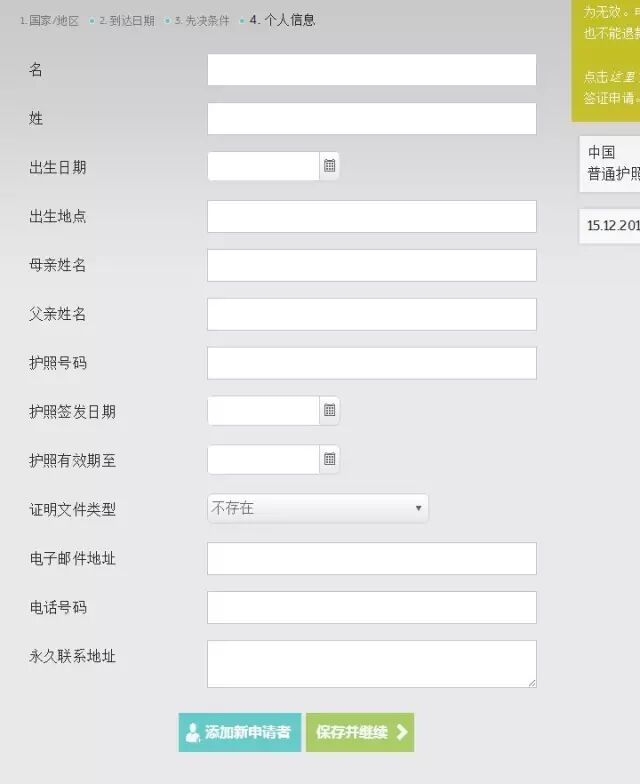 5、点击保存后进入土耳其电子签证个人信息填写页面。信息填写是整个电子签证流程中最关键的一步,在这里申请人必须用英文认证填写每一项,并确保信息是真实准确的。电话号码和电子邮箱尤其重要,千万不可填错,否则你可能收不到领取签证的信息。
