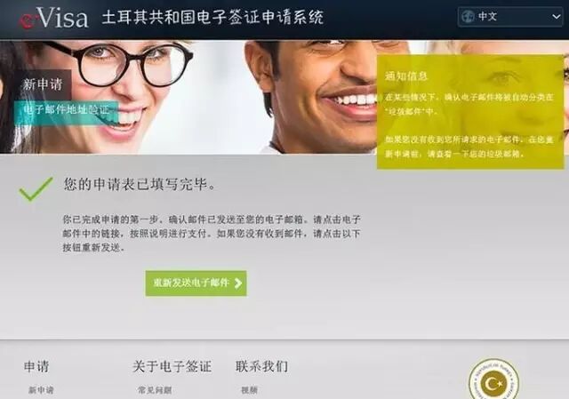 1、进入土耳其电子签证官方网站:https://www.evisa.gov.tr/zh,在页面右上角选择中文,即可看见中文版本。