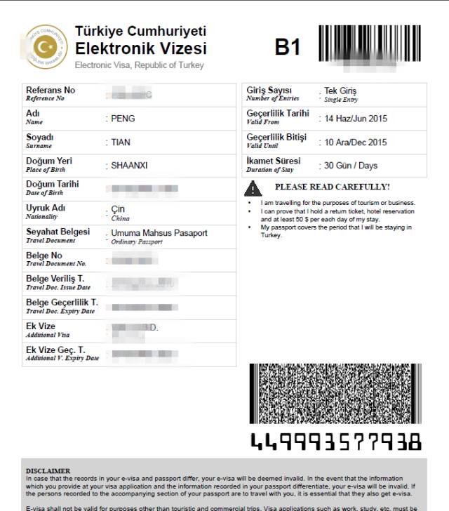 10、下载PDF版本的土耳其电子签证,并且打印出来和护照随身携带,以备中国出关和土耳其入境海关检查。为了防止打印的文件丢失,建议最好拷贝一份,以备不时之需。